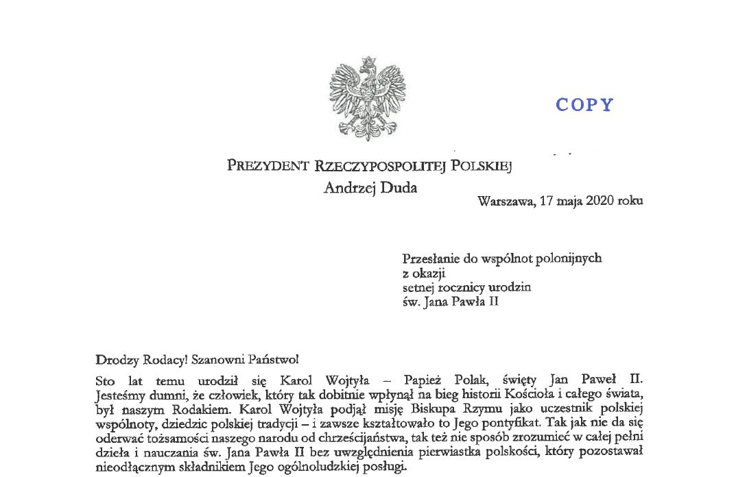List Prezydenta RP do Polonii